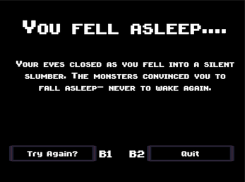 Sleep paralysis demons sit at every corner of your room, wishing to make you fall asleep and enter their domain. Don't let them convince you they are real or that you're tired. Do not fall asleep.